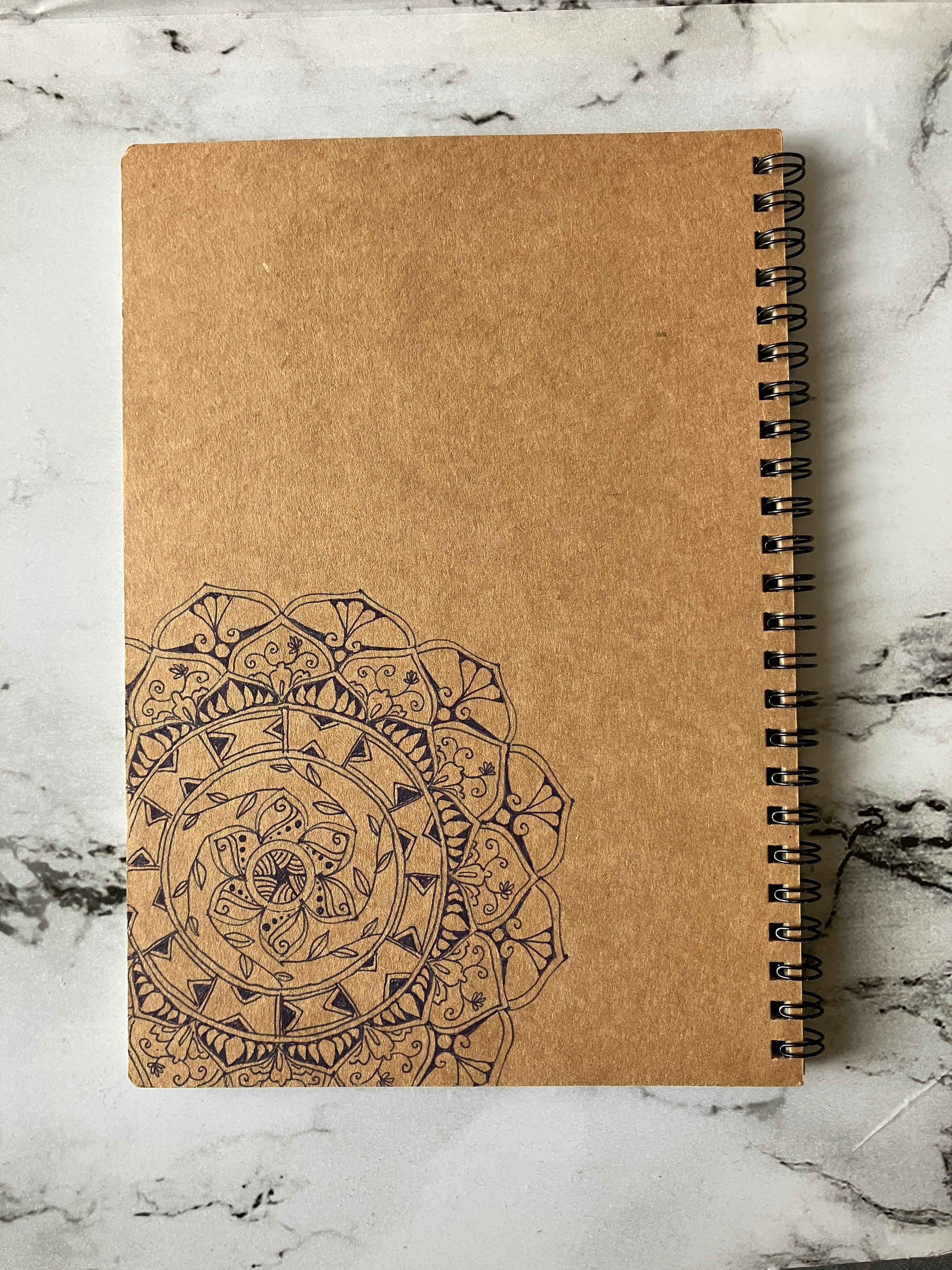 ご覧いただきありがとうございます。 A5ノートの表紙に線描まんだら画を描きました。 ボールペンで手描きした1点物です。